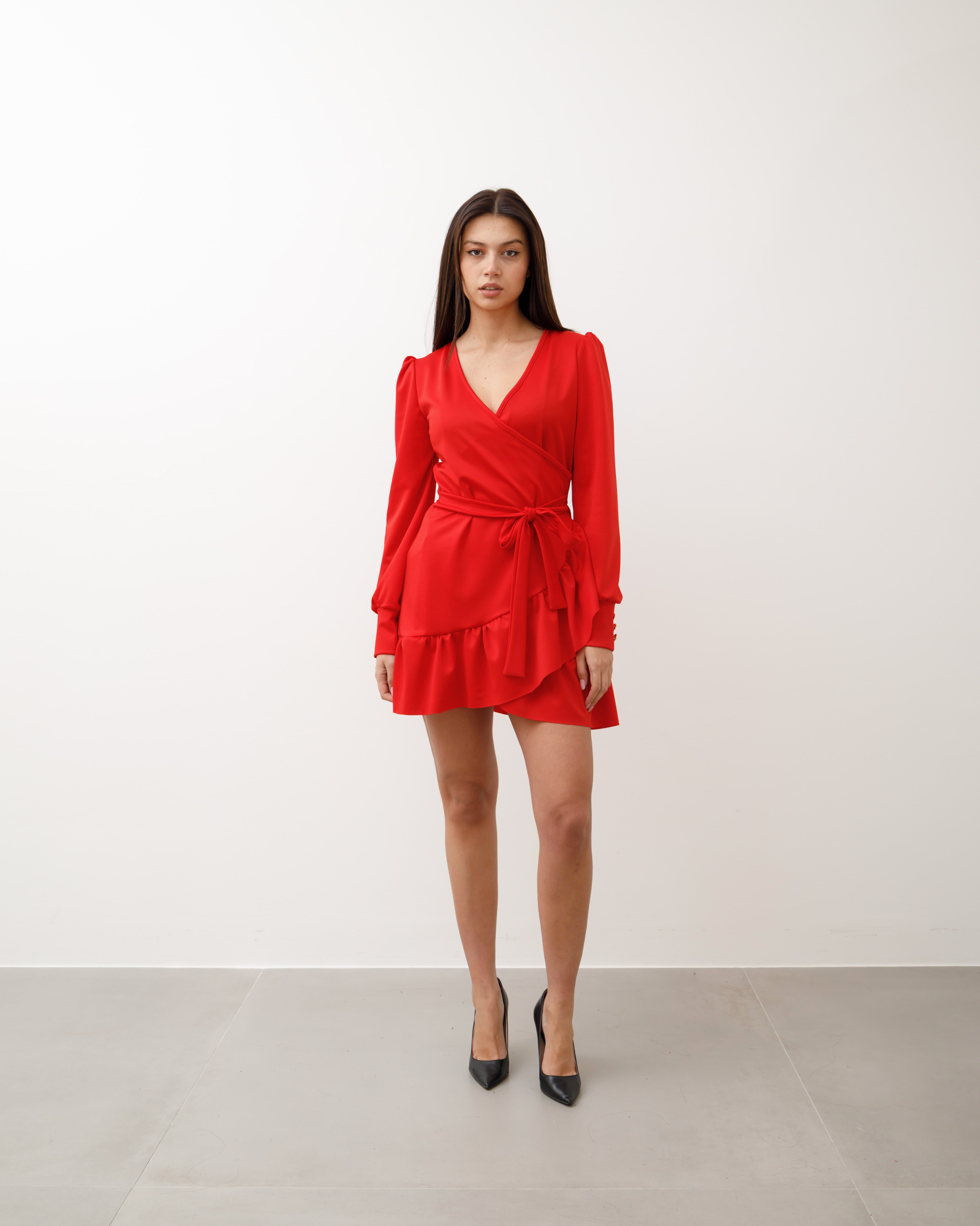 Femminile e chic, questo abito corto avvolge la vita con un incrocio a V che valorizza la silhouette 💃. La gonna leggera è arricchita da volants svolazzanti che donano movimento e romanticismo 🌸. Perfetto per serate eleganti o eventi speciali, combina stile e comfort in un solo capo 💖.