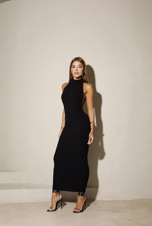 Abito lungo e aderente in un elegante nero profondo 🖤, dal taglio a colonna che avvolge la silhouette mettendo in risalto le forme in modo raffinato 💃.