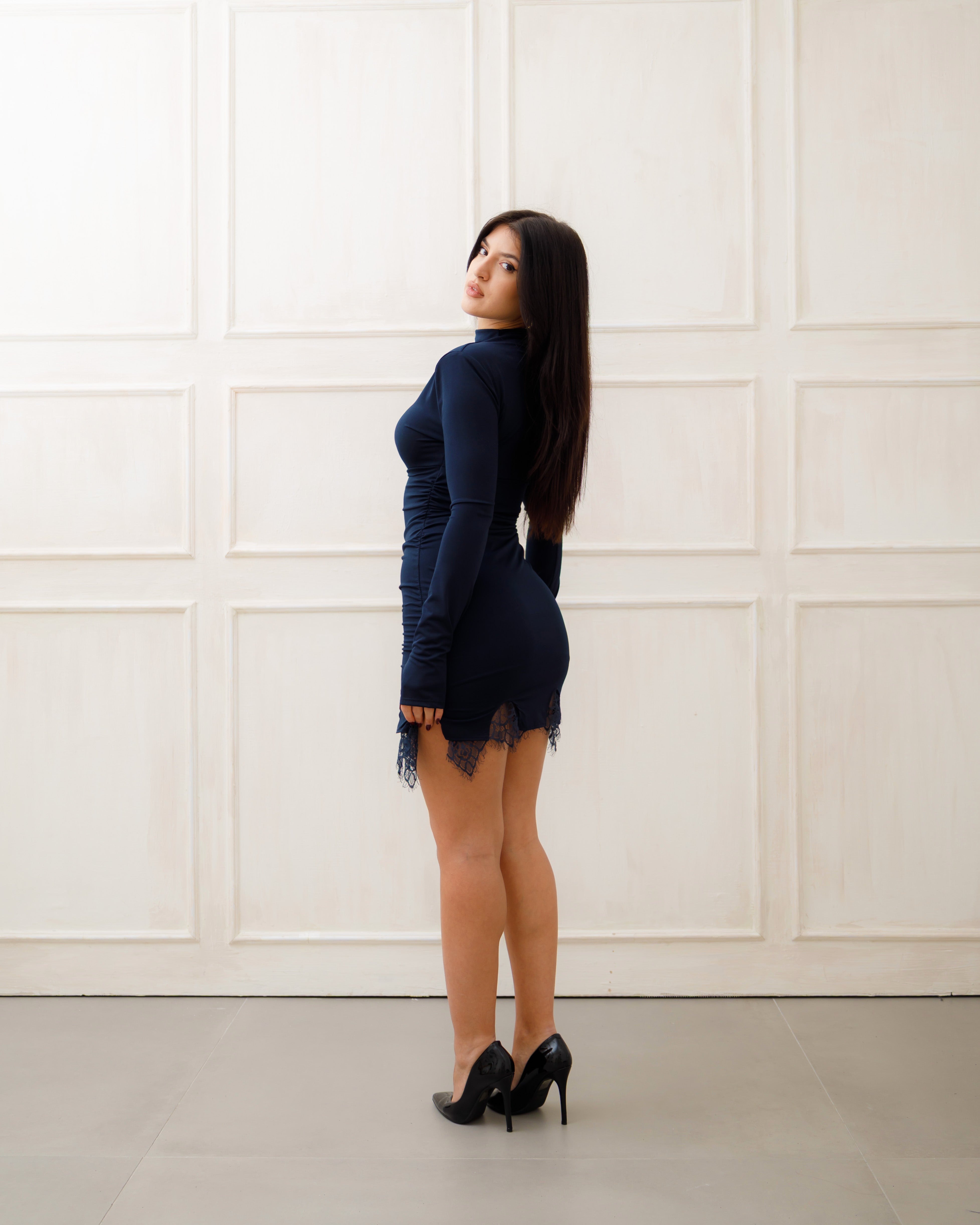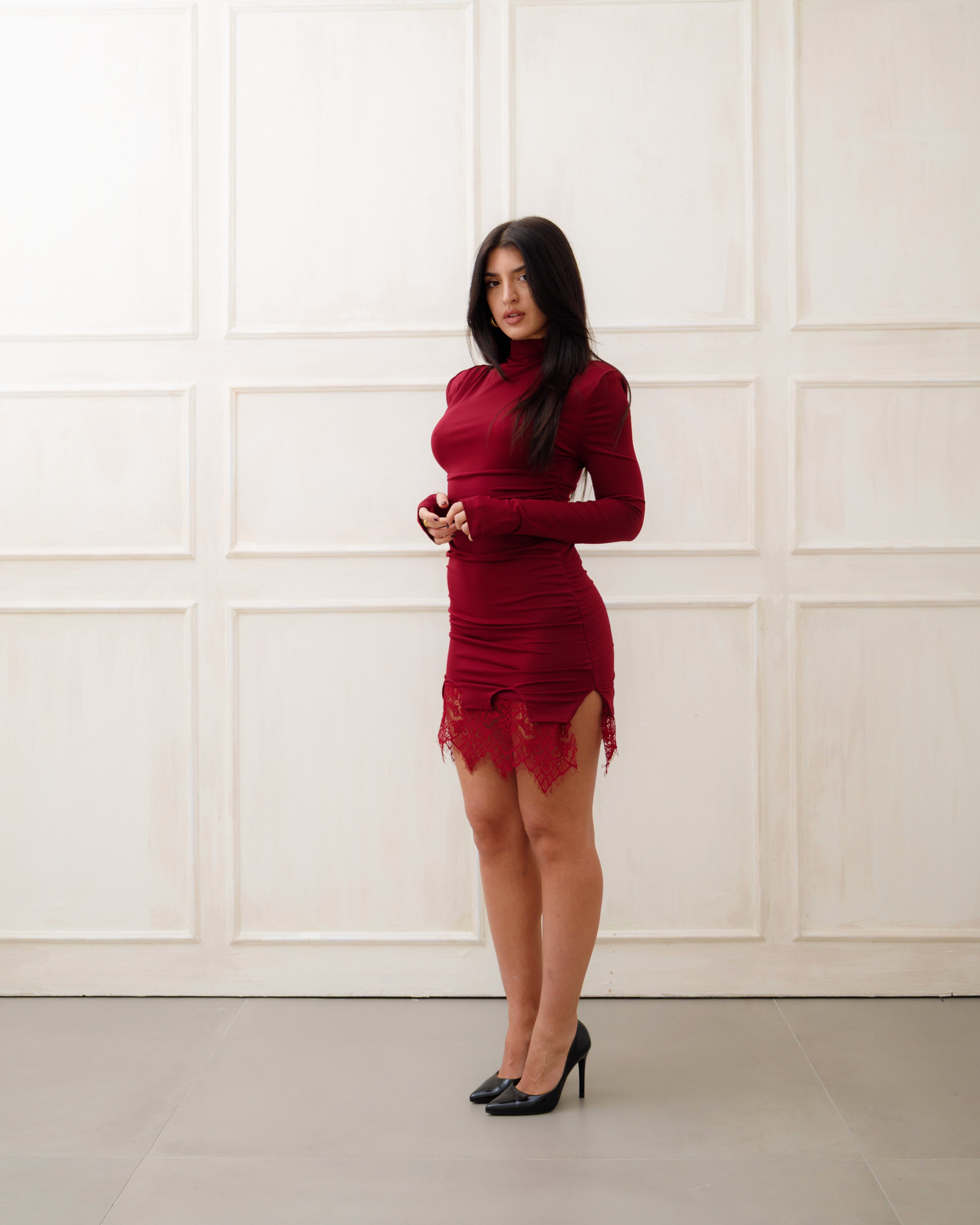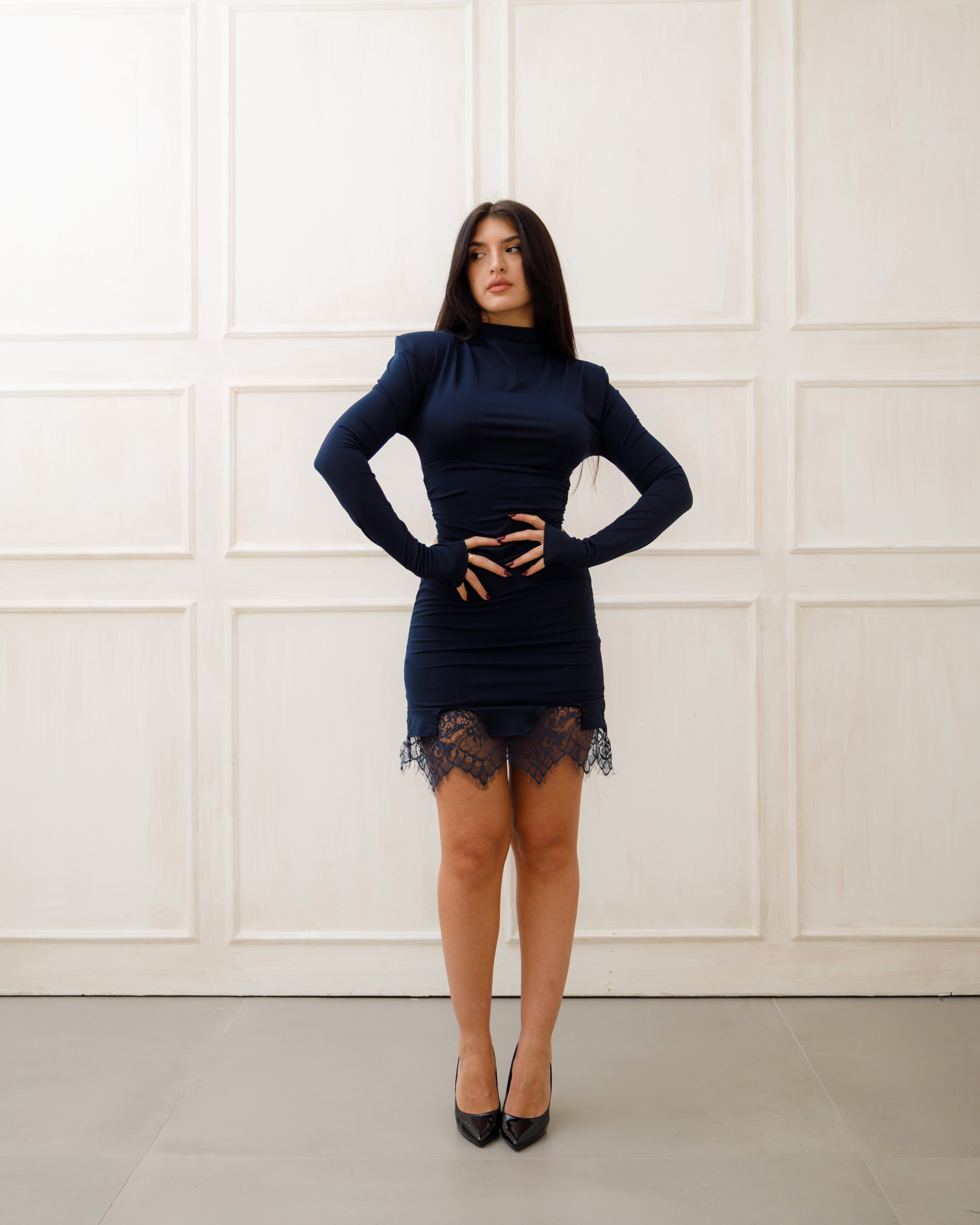 La linea aderente 🤍 mette in risalto la silhouette, mentre il collo alto e le maniche lunghe aggiungono un tocco raffinato ✨