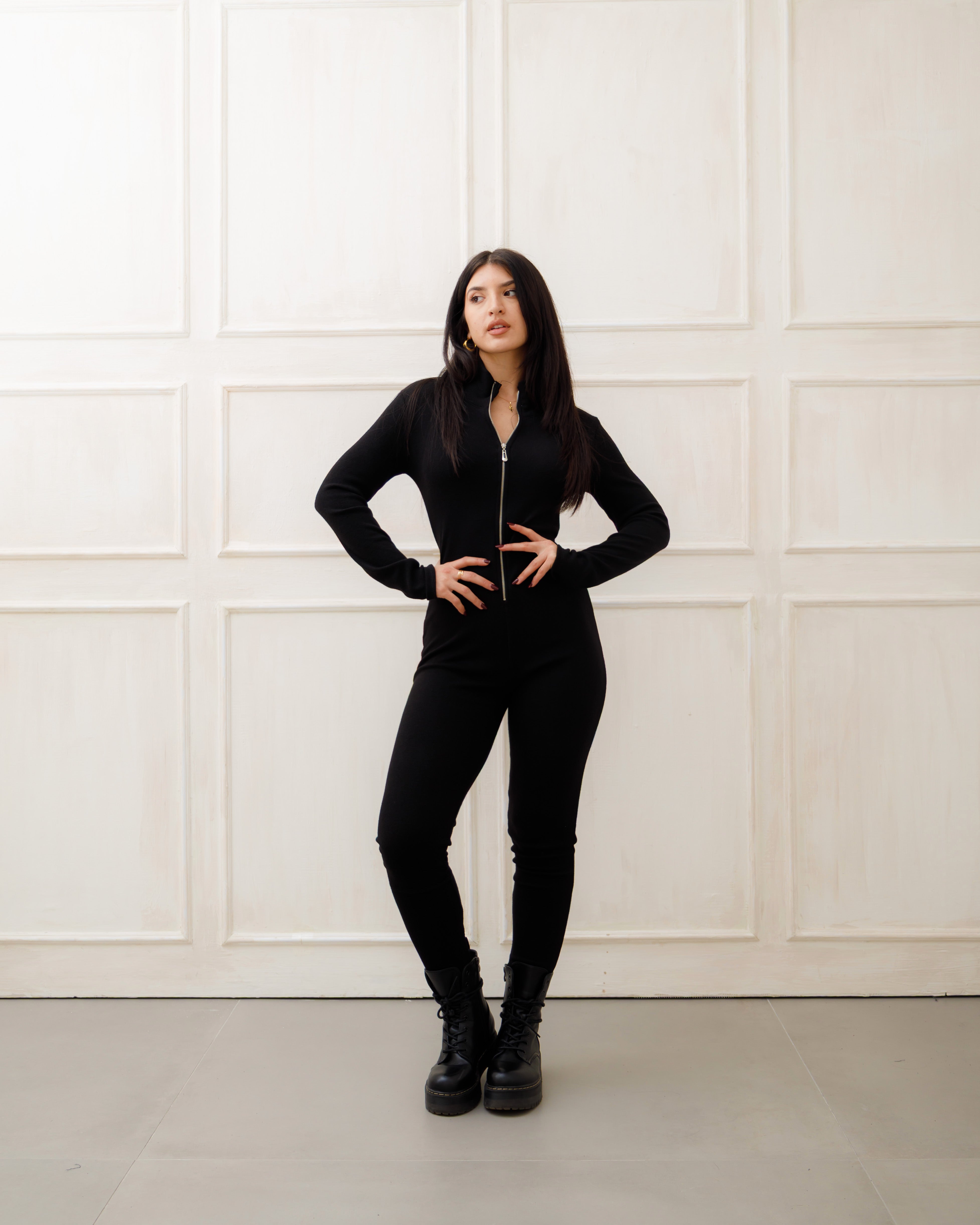 La tuta in lana con zip argento è un capo elegante e confortevole ✨
